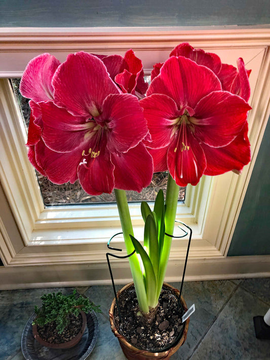 Red & White Amaryllis In Full Bloom Fine Art Print On Archival Paper or Canvas